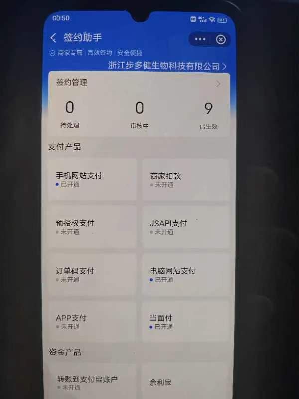 账户功能:企业支付宝主体已开通即时到账接口。